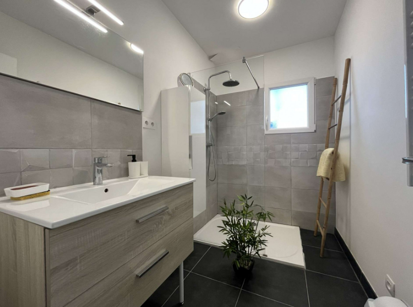 Vous apprécierez également la salle d’eau, moderne et élégante, avec une douche à l’italienne.
