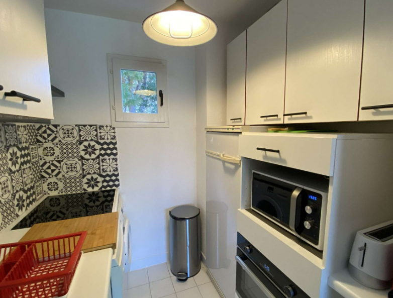 En entrant, vous serez accueilli par un hall distribuant les différentes pièces. Le salon-séjour, lumineux et convivial, s’ouvre sur la terrasse pour profiter pleinement du soleil à Le Lavandou. La cuisine équipée attenante permet de partager des repas confortables en famille ou entre amis.