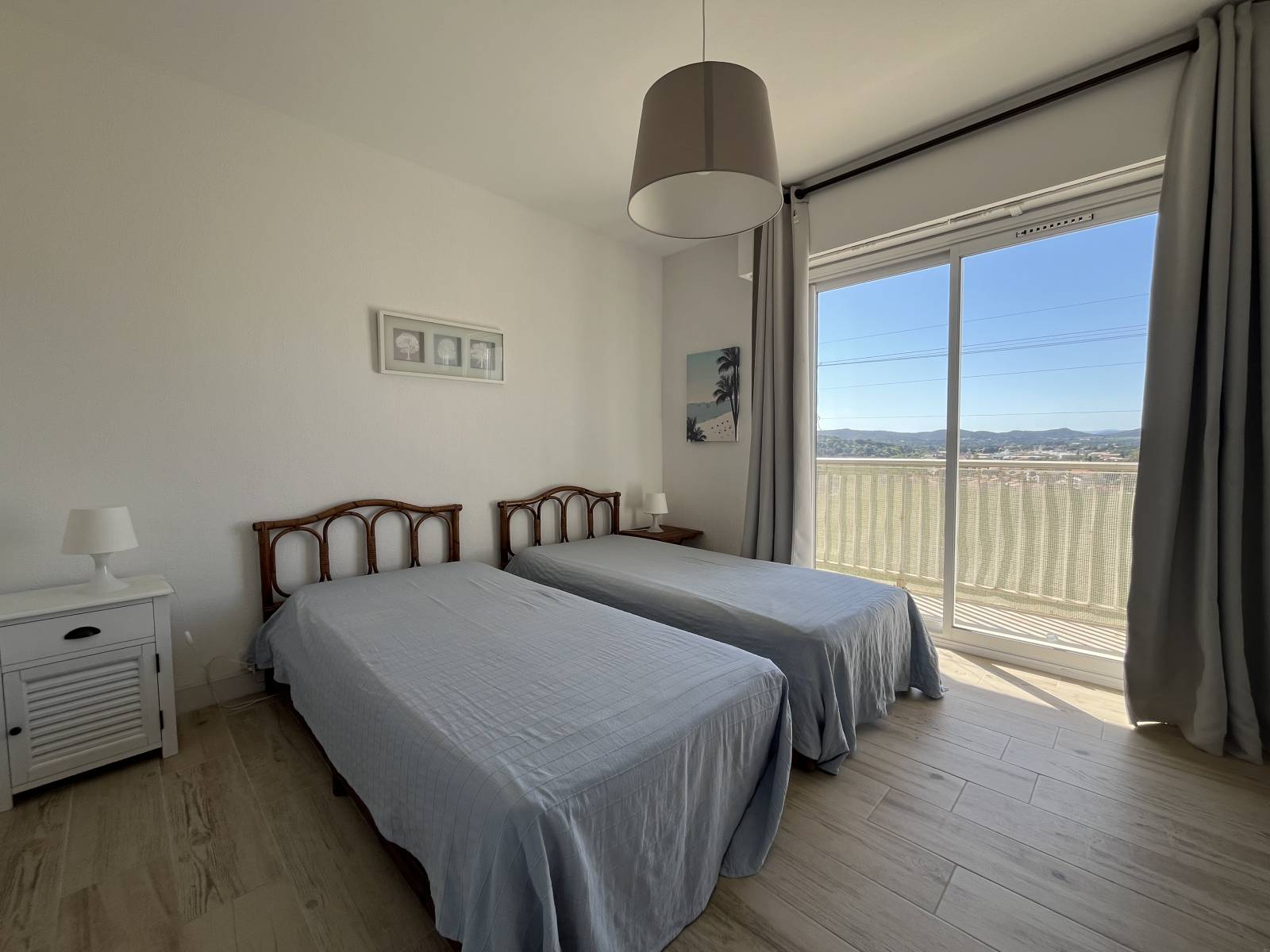 La chambre est dotée de deux lits d'une place, de deux tables de nuit et d'un très grand placard de rangement. Un coin enfant avec un lit est également prévu, et le balcon adjacent est orienté à l'ouest.