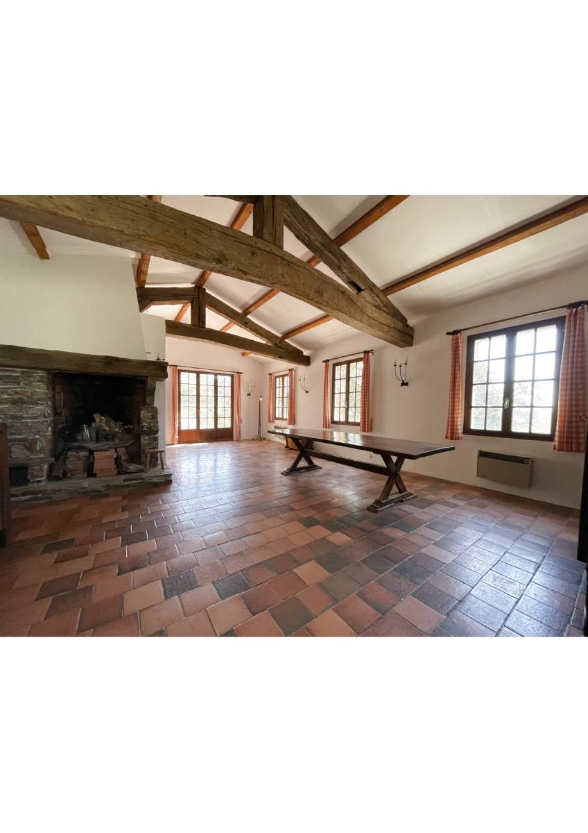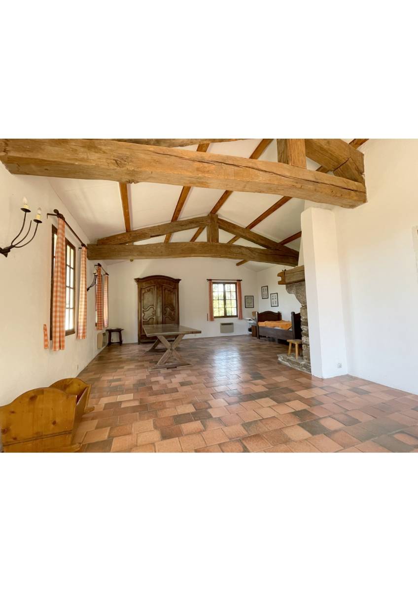 - La première est l'habitation principale: une maison en R+1 de 114 m² habitable composée d'une entrée, un grand salon-séjour avec cheminée et poutres apparentes, une cuisine séparée, trois chambres (dont une en rez-de-chaussée), une salle de bains avec WC, une salle d'eau avec WC, deux terrasses.